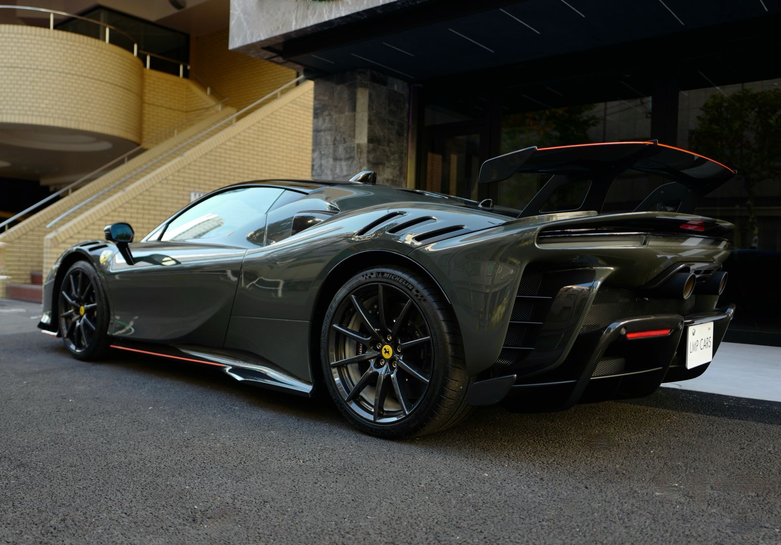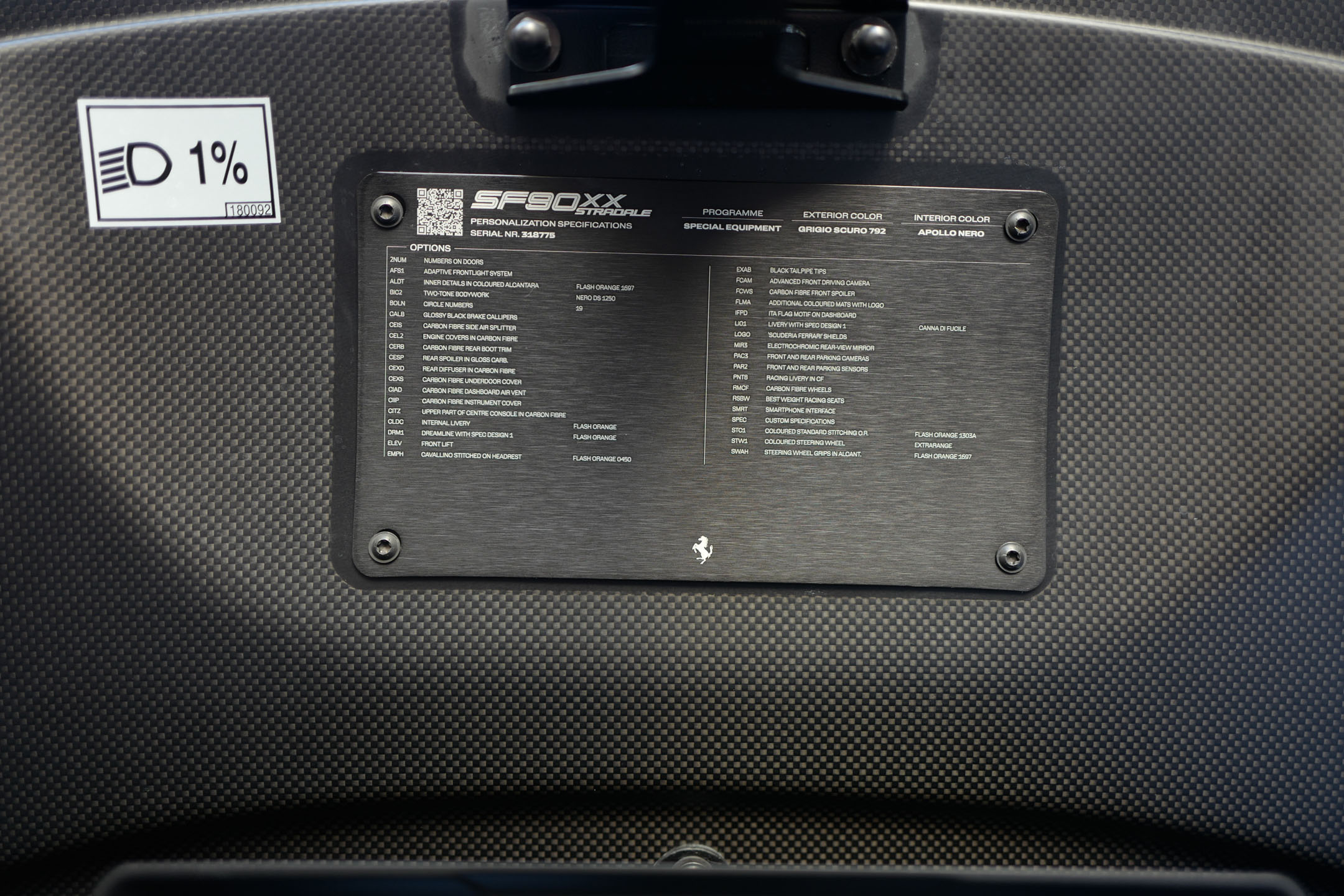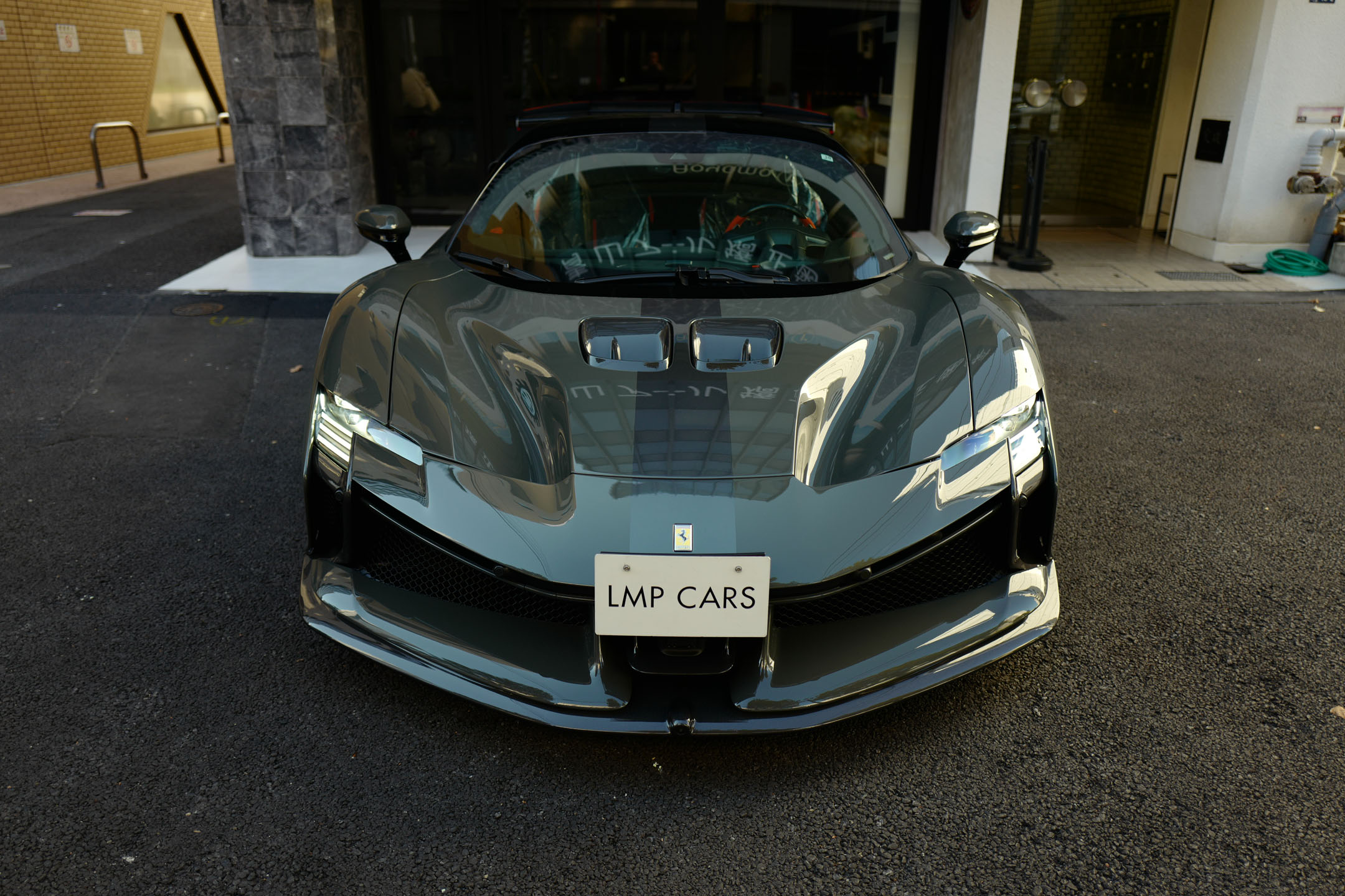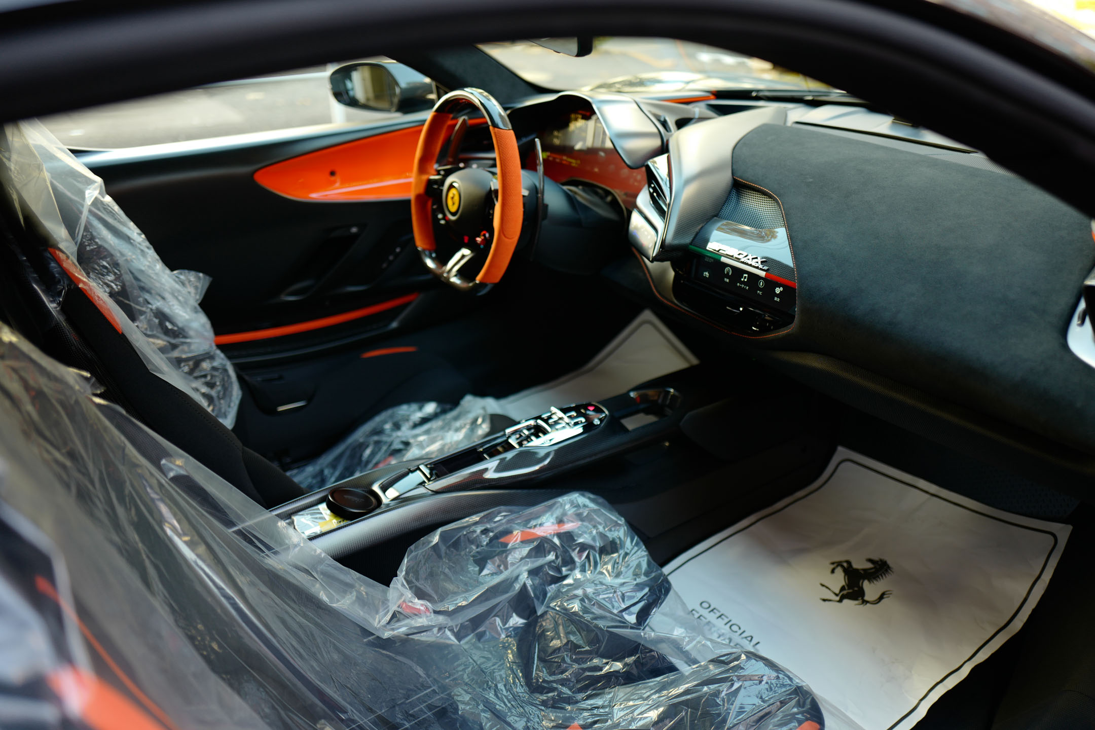 こちらのお車はオプション総額1,400万オーバーを選択されたスペシャルな一台でグリジオ・スクローカラーはネロツートンカラーがアクセントとなっています。ナンバープレートが装着されていますが、未走行・未使用のコンディションで、装着されているオプション装備は以下になります。