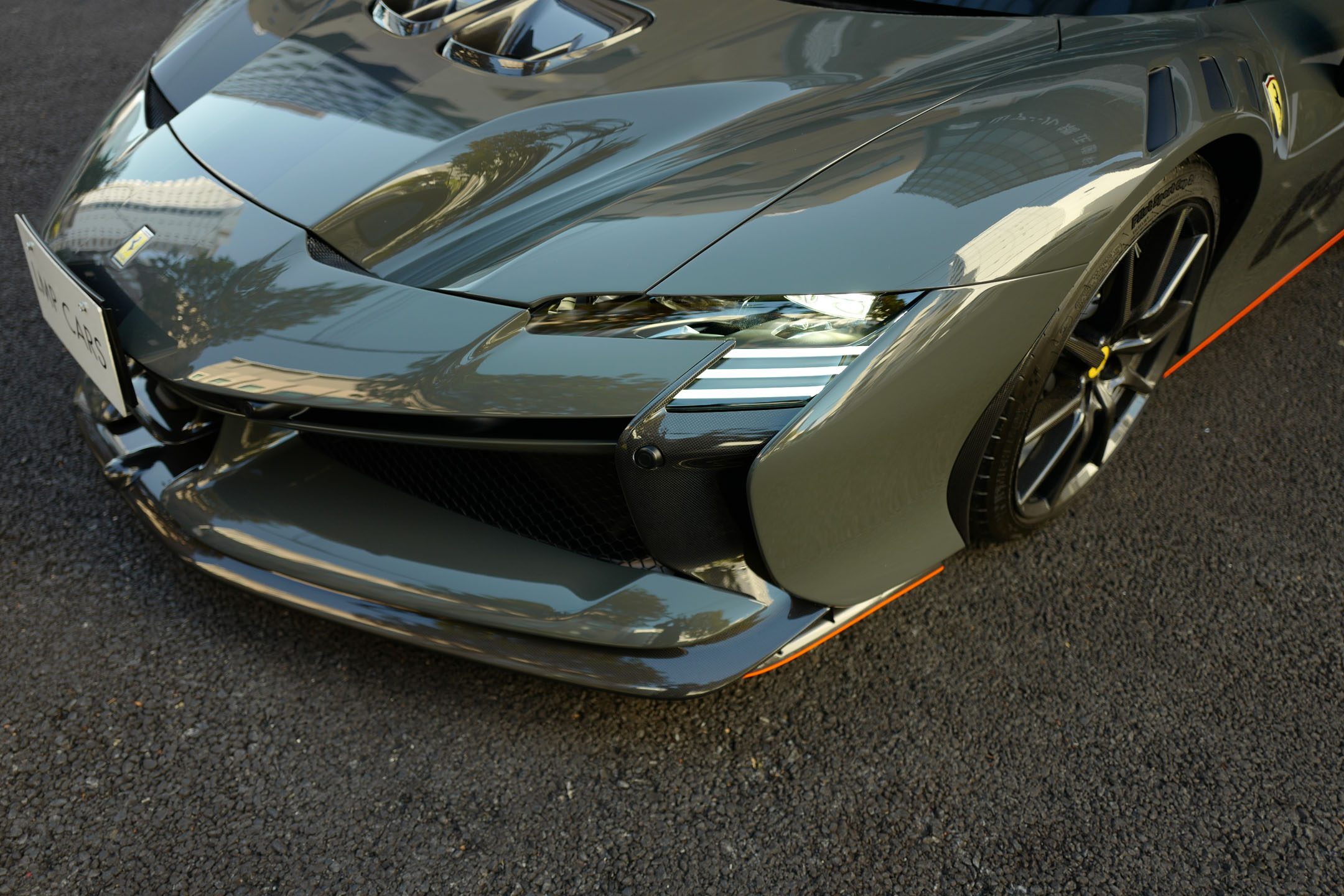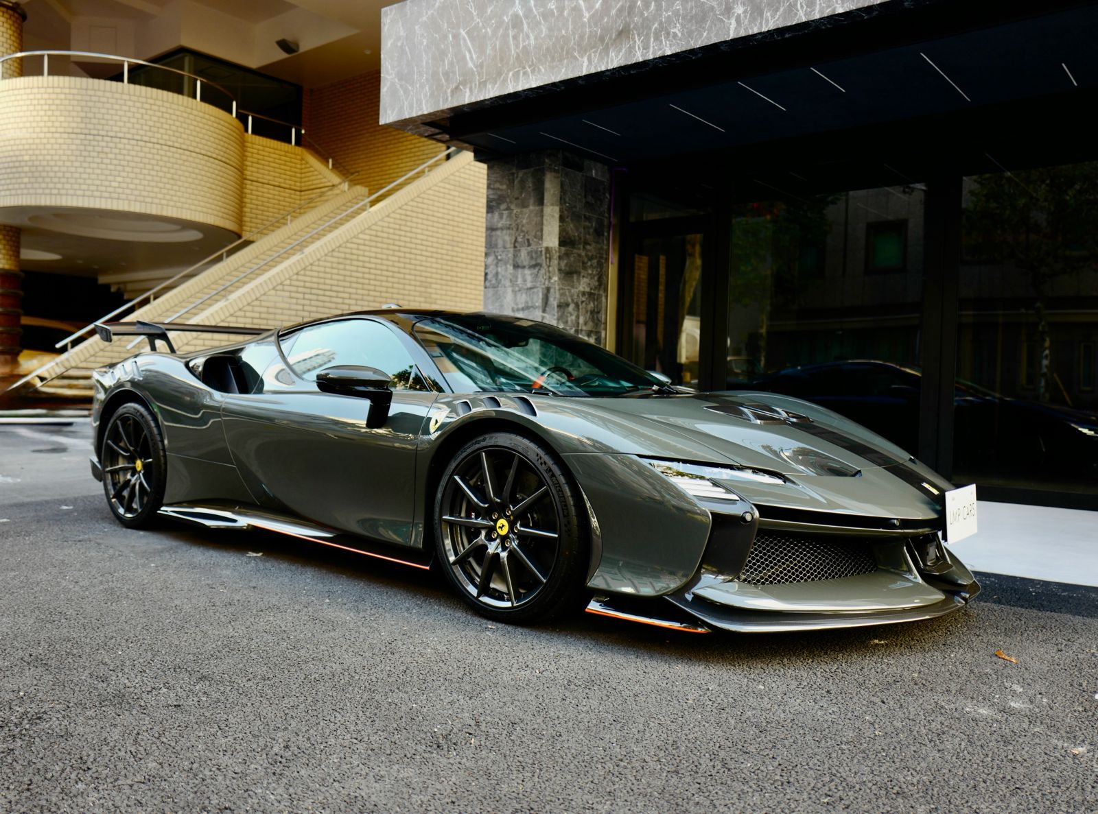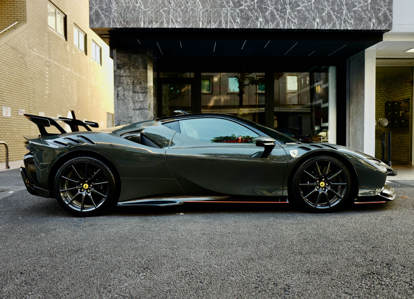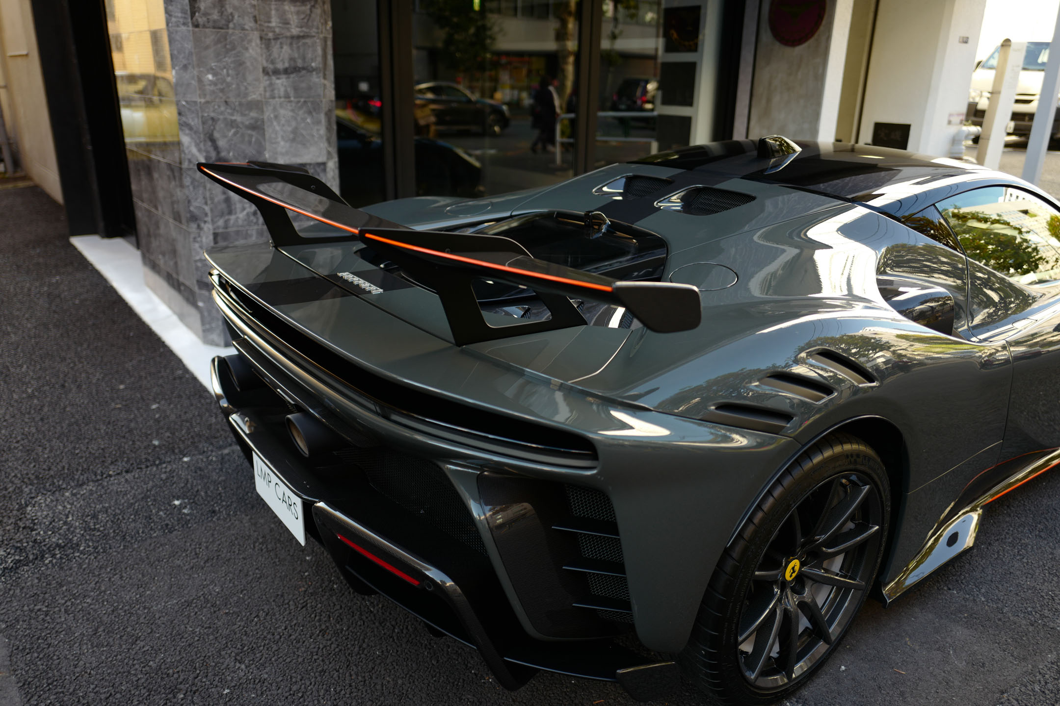 こちらのお車はオプション総額1,400万オーバーを選択されたスペシャルな一台でグリジオ・スクローカラーはネロツートンカラーがアクセントとなっています。ナンバープレートが装着されていますが、未走行・未使用のコンディションで、装着されているオプション装備は以下になります。