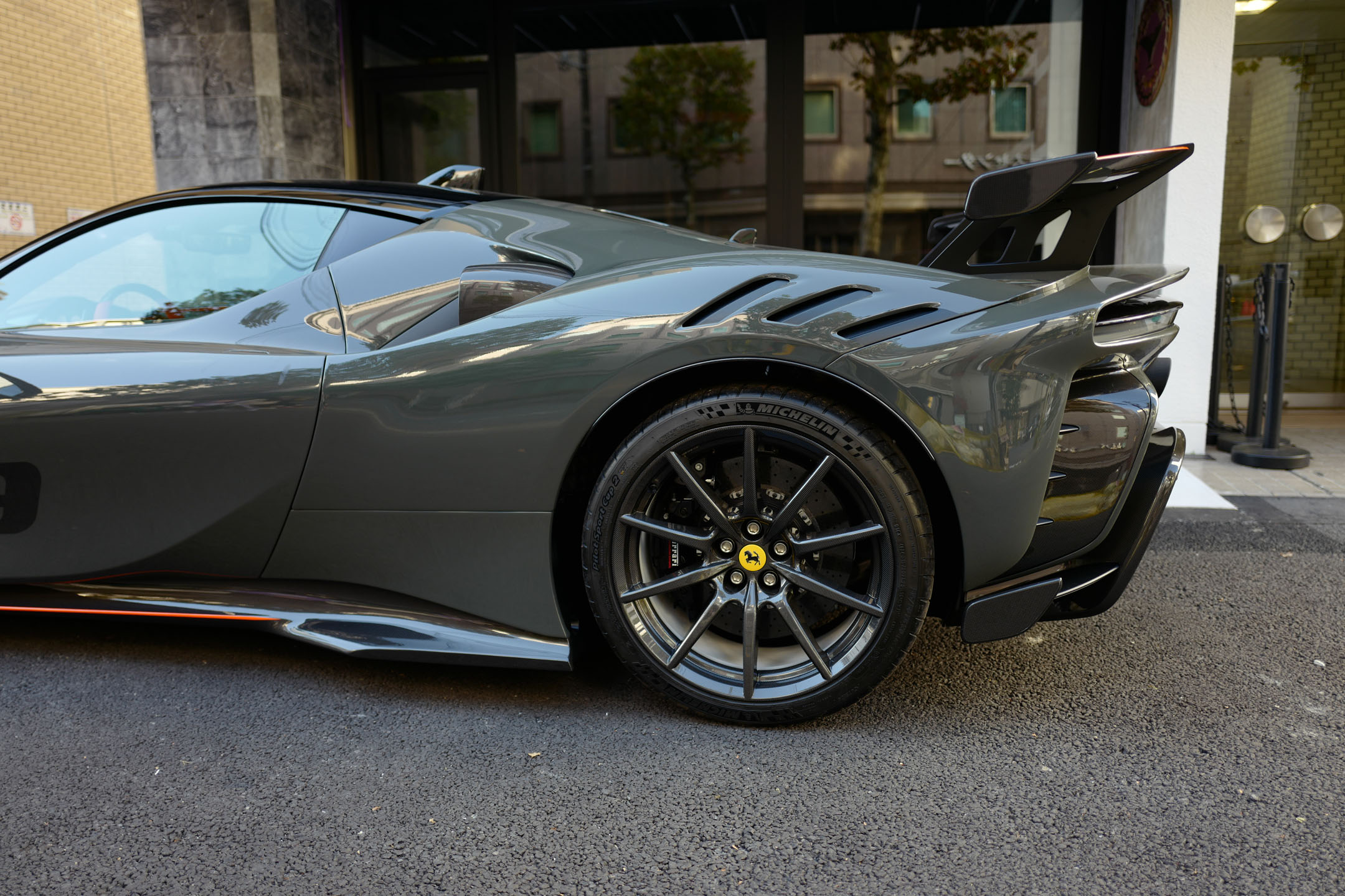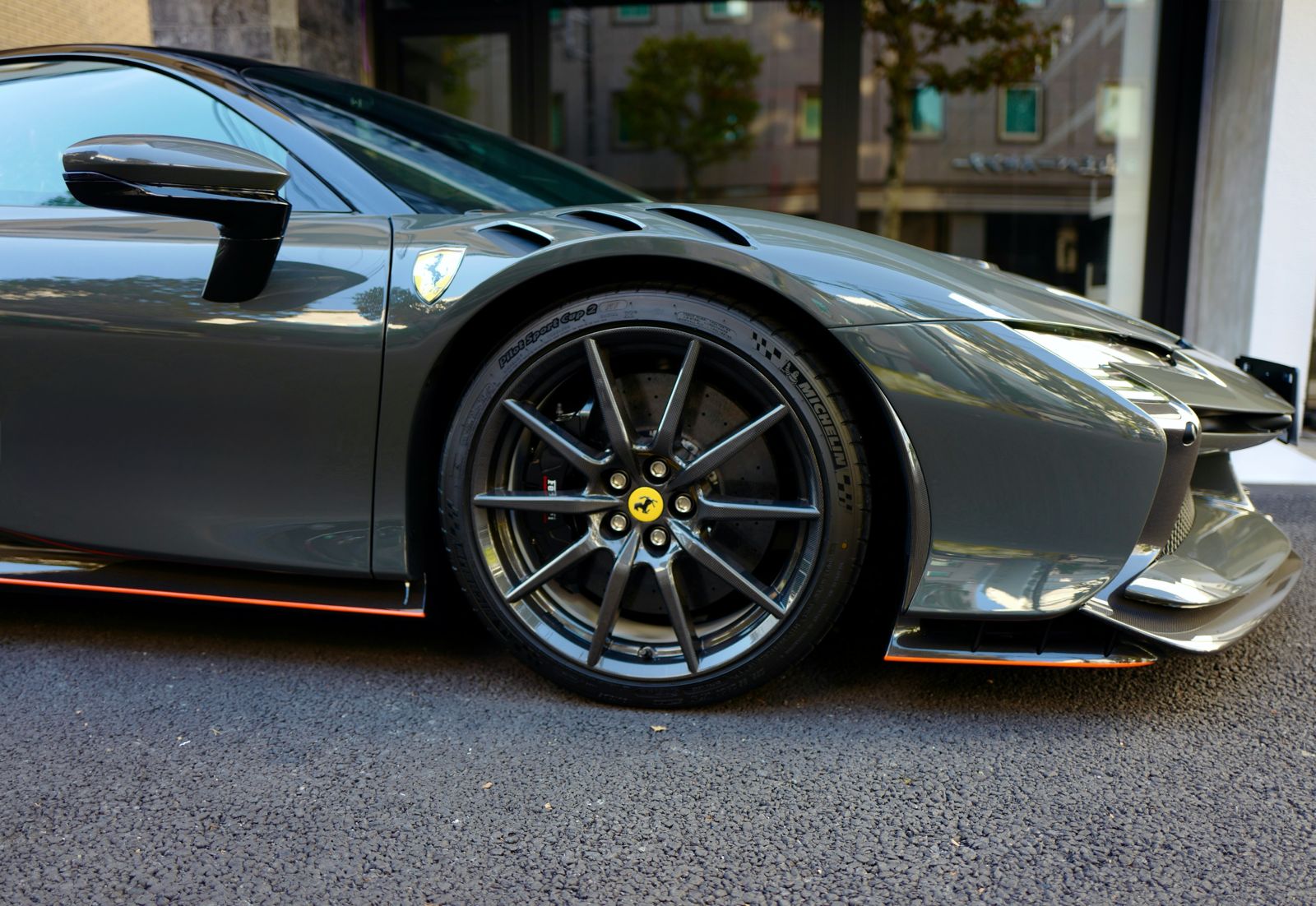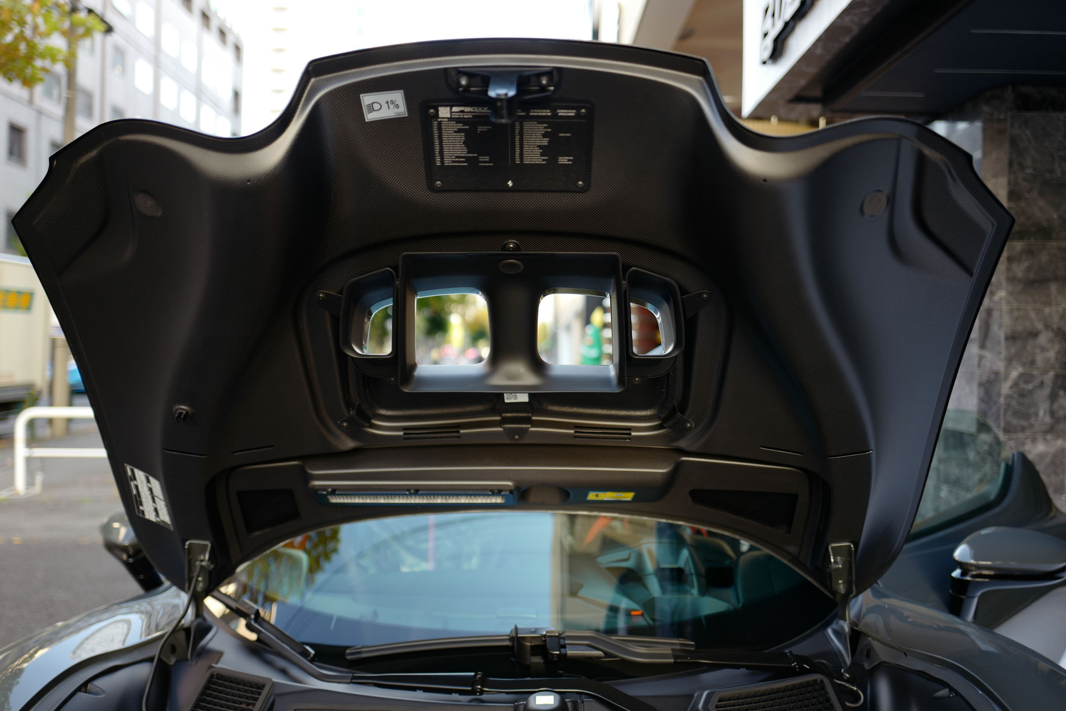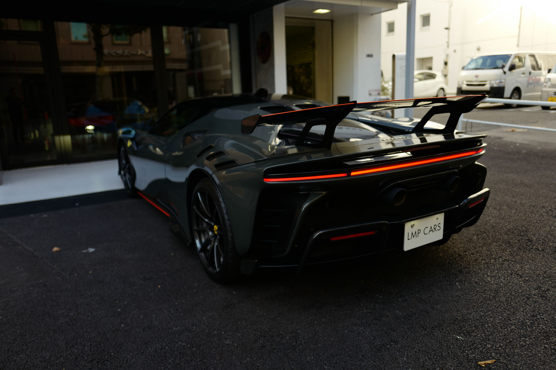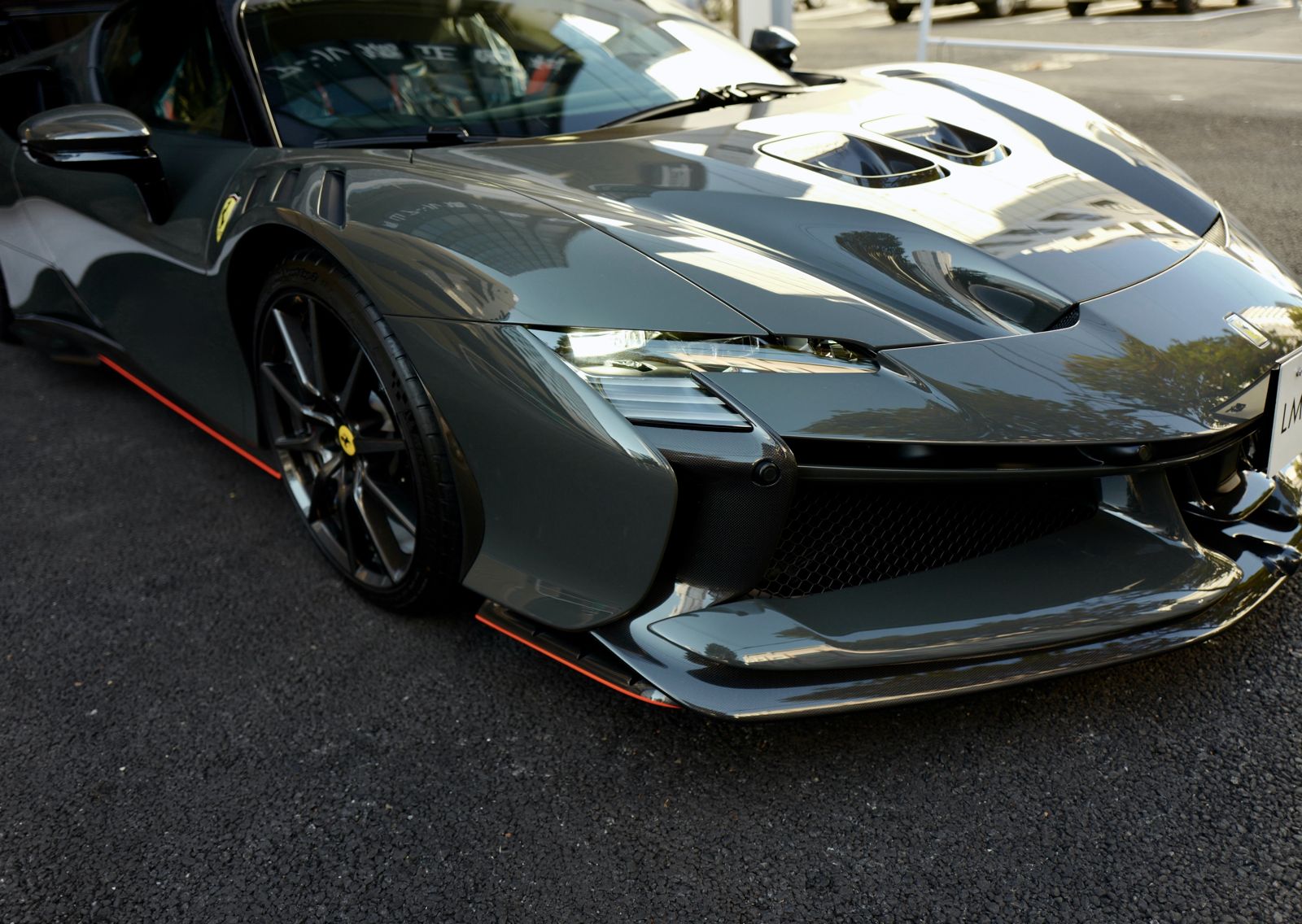 こちらのお車はオプション総額1,400万オーバーを選択されたスペシャルな一台でグリジオ・スクローカラーはネロツートンカラーがアクセントとなっています。ナンバープレートが装着されていますが、未走行・未使用のコンディションで、装着されているオプション装備は以下になります。