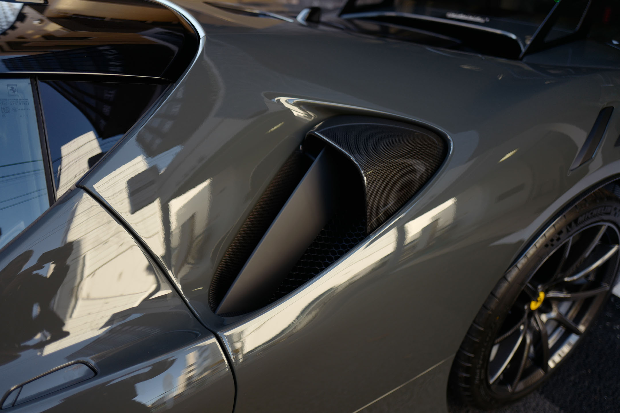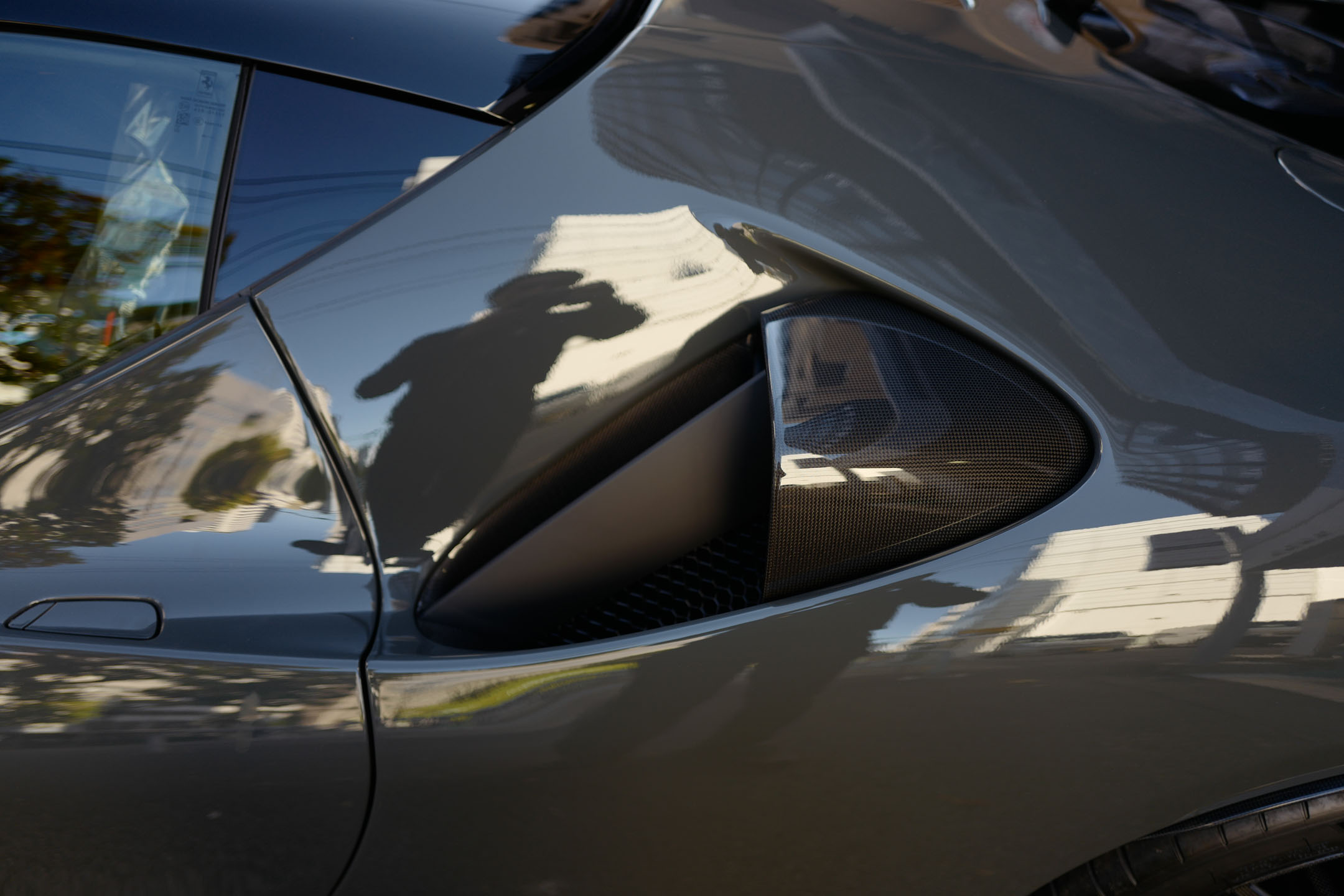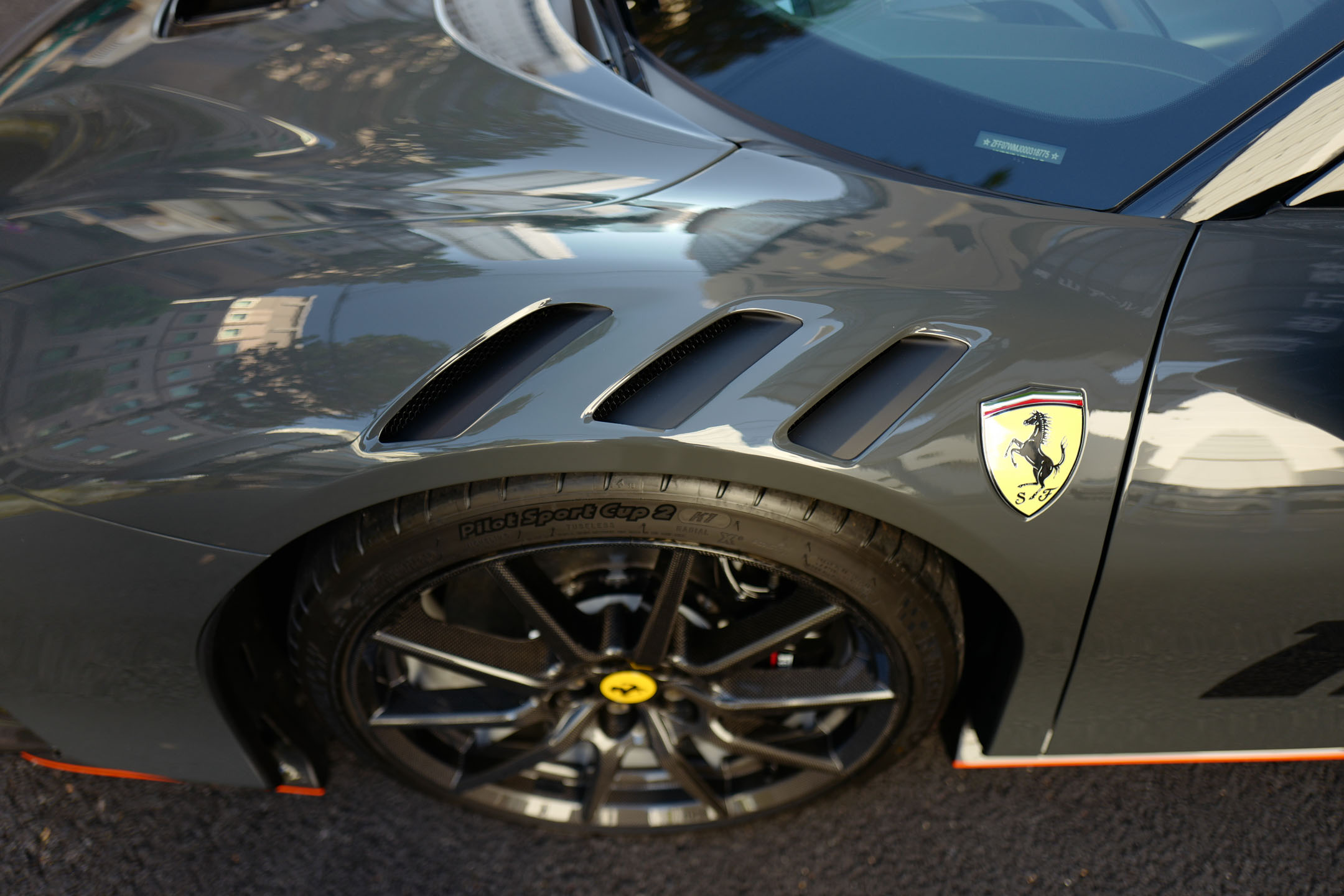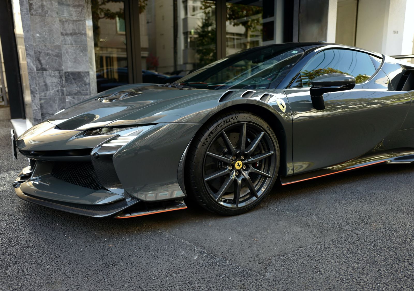 こちらのお車はオプション総額1,400万オーバーを選択されたスペシャルな一台でグリジオ・スクローカラーはネロツートンカラーがアクセントとなっています。ナンバープレートが装着されていますが、未走行・未使用のコンディションで、装着されているオプション装備は以下になります。