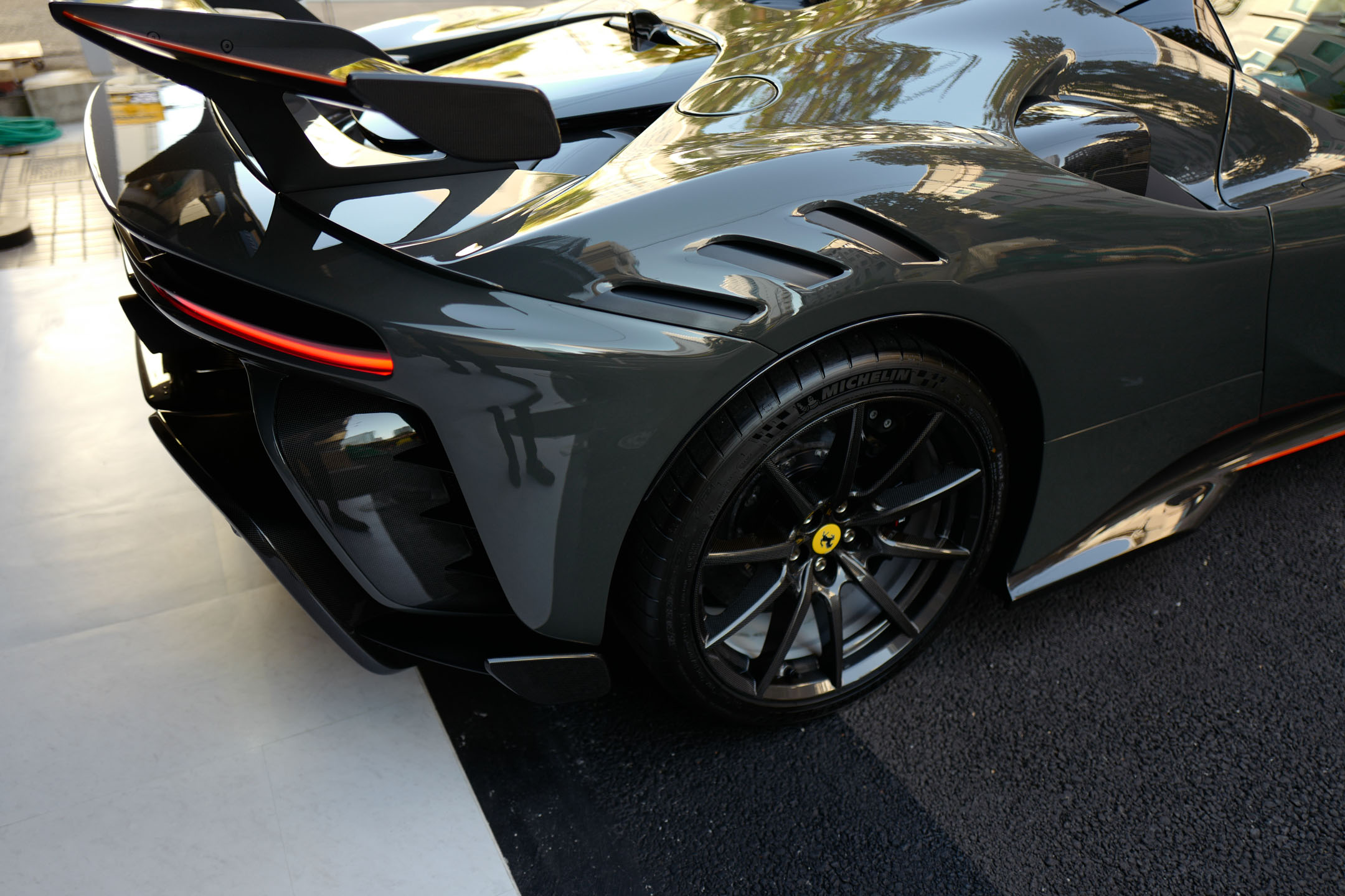 そのパフォーマンスは目を見張る新たな高みに到達しています。30 cvの出力アップを果たし、特殊なソフトウェア・ロジックと斬新な空力ソリューションを採用しており、特に固定リアウィングが公道モデルに装備されるのはF50の時代以来のことです。